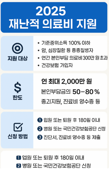 📢 갑작스러운 질병이나 사고로 인해 의료비 부담이 커졌다면, 국가에서 지원하는 **'재난적 의료비 지원 제도'**를 꼭 확인하세요. 2025년에는 지원 대상과 범위가 확대되어 더 많은 분들이 도움을 받을 수 있습니다.