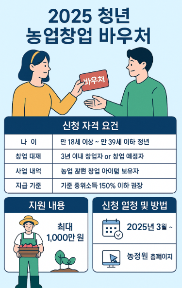 2025년에도 농림축산식품부는 청년 농업창업 바우처 지원사업을 시행합니다.