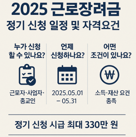 매년 수많은 분들이 신청하는 근로장려금, 2025년에도 정기 신청이 시작됩니다. 소득이 일정 기준 이하인 근로자, 사업자, 종교인이라면 누구나 신청할 수 있는데요, 지급일정과 자격요건</strong을 미리 파악해두면 훨씬 수월하게 받을 수 있습니다.