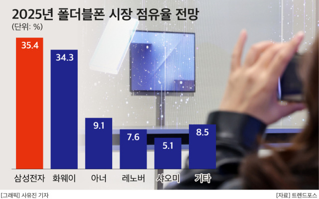 2025년에는 폴더블 스마트폰 시장이 크게 성장할 것으로 예상됩니다. 삼성전자는 35.4%의 시장 점유율을 차지할 것으로 보이며, 경쟁사인 화웨이도 34.3%로 뒤따르고 있습니다.