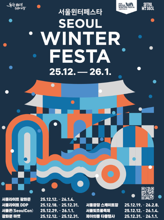 | 2025 서울 윈터페스타 | 2025년 12월 12일 ~ 2026년 1월 4일 | 광화문 광장·광화문 광장 주변, Cheonggyecheon Stream (청계천), Dongdaemun Design Plaza (DDP), Seoul Plaza, Bosingak Pavilion, 등 서울 도심 주요 지점 |