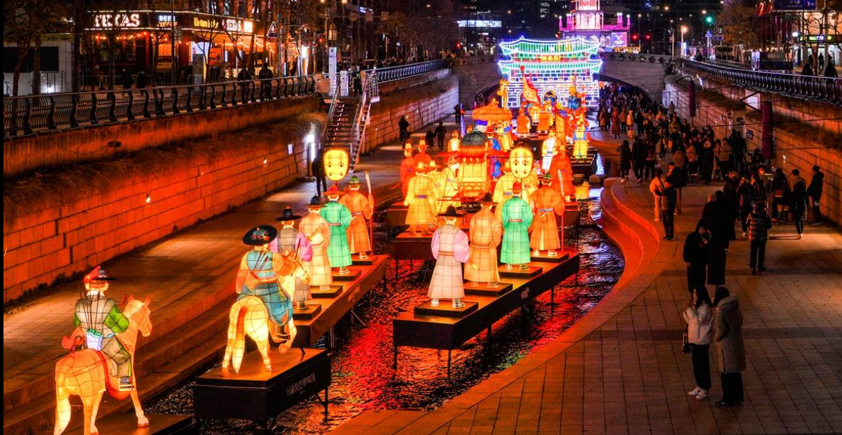 | Seoul Lantern Festival (청계천) | 청계천 일대에 설치된 등(燈) 조형물 + 미디어아트, 야경 산책 코스. 겨울 밤 산책 명소. |