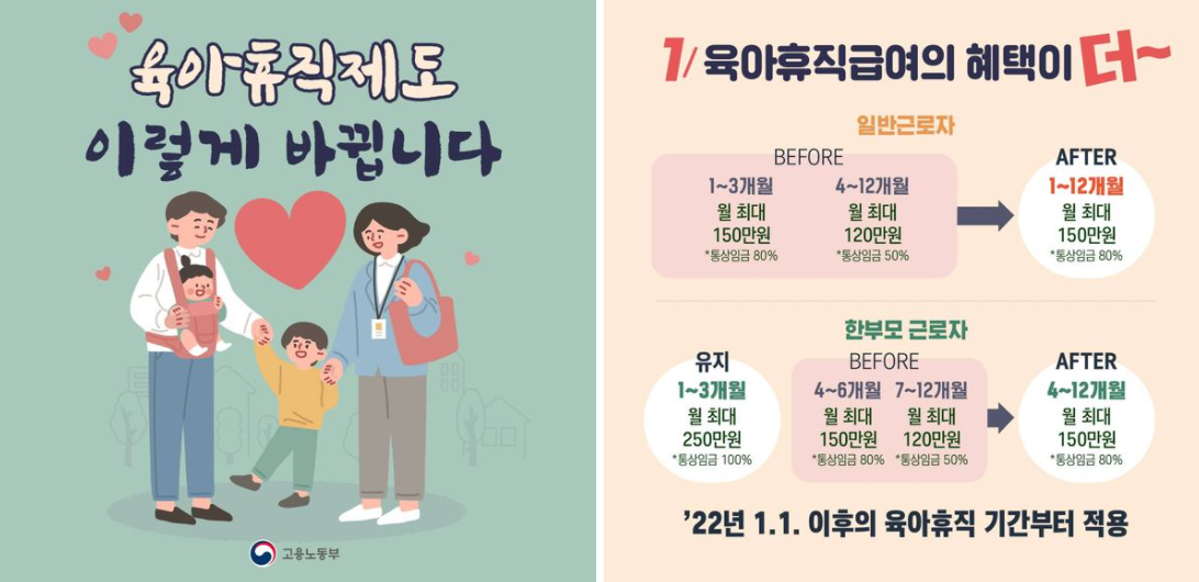 와 같은 자료를 통해 육아휴직 제도의 변화와 지원 내용을 확인할 수 있습니다.