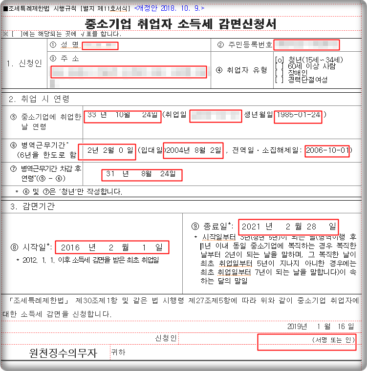신청서에는 이름, 주소, 주민등록번호, 고용 시작일, 직책 등의 정보가 포함되어야 합니다. 신청서는 고용주와 함께 제출해야 하며, 제출 후에는 국세청에서 심사를 진행합니다.