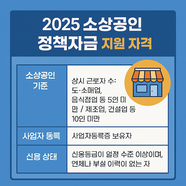 지원받기 위해서는 몇 가지 조건을 충족해야 합니다. 우선, 소상공인으로 등록되어 있어야 하며, 사업자 등록증을 보유하고 있어야 합니다. 또한, 직원 수에 따라 지원 자격이 다르며, 예를 들어 소매업이나 음식 서비스업은 최대 5명, 제조업이나 건설업은 최대 10명까지 가능합니다. 더불어, 신청자는 신용 등급이 일정 수준 이상이어야 하며, 재정적 문제가 없어야 합니다.