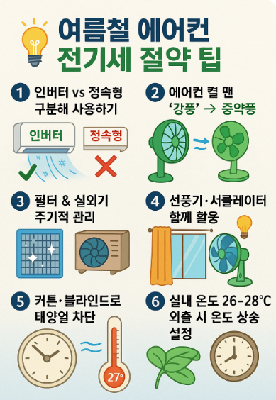 위 6가지 팁만 따라 해도, 여름 전기세 부담은 꽤 줄어듭니다.