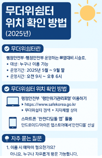 - 대상: 누구나 이용 가능 (특히 폭염 취약계층 우선)